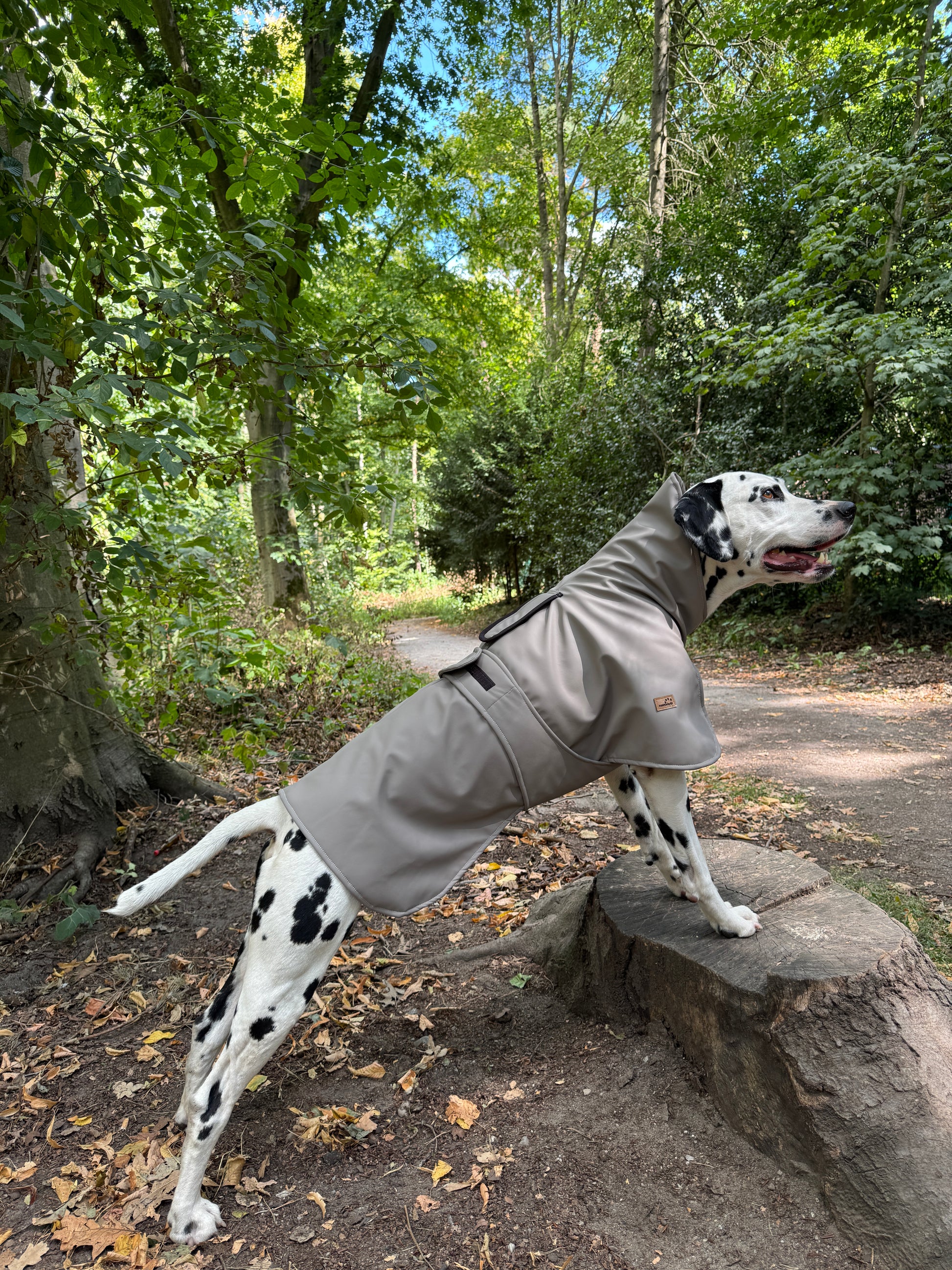 Stylischer Regenmantel aus veganem Kunstleder für deinen HundOb Regen, Wind oder Matsch – mit unserem schicken Regenmantel aus veganem Kunstleder bleibt dein Hund trocken und sieht dabei top aus! Der Mantel ist leicht, wasserdicht und mit kuscheligem Plüschfutter gefüttert, damit dein Vierbeiner es schön gemütlich hat.Was rockt?