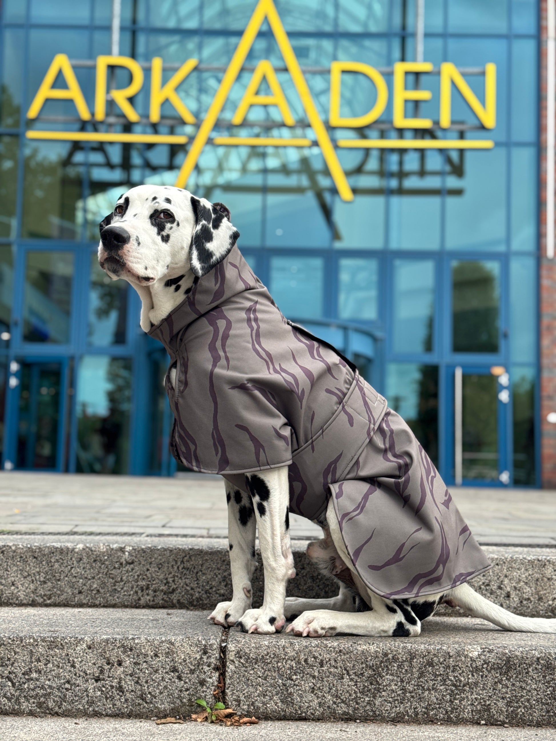 Cooler Softshell-Regenmantel für deinen HundEgal, ob’s schüttet oder nur nieselt – mit unserem wasserdichten Softshell-Regenmantel bleibt dein Vierbeiner trocken und happy! Der Mantel ist super leicht, total bequem und aus robustem Softshell, das Wind und Wetter locker wegsteckt.Was geht ab?